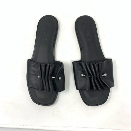 1. State Fann Sandal Black Leather Ruched Ruffled Open Toe Slide Sandal Size 9