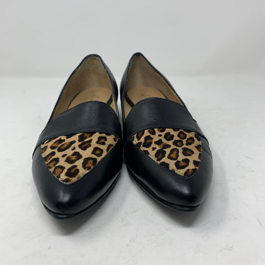 Avellini Black Leather Loafer Pointed Toe Calf Hair Animal Print 40 Made In Italy