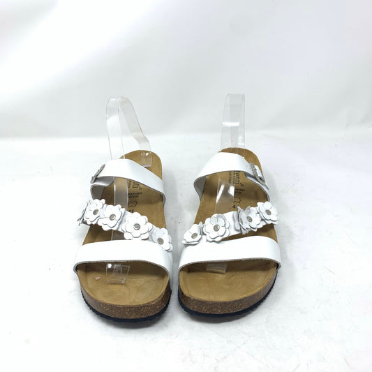 Autenti 41 White Leather Floral Accent Cork Footbed Sandal 12074 Size 9.5
