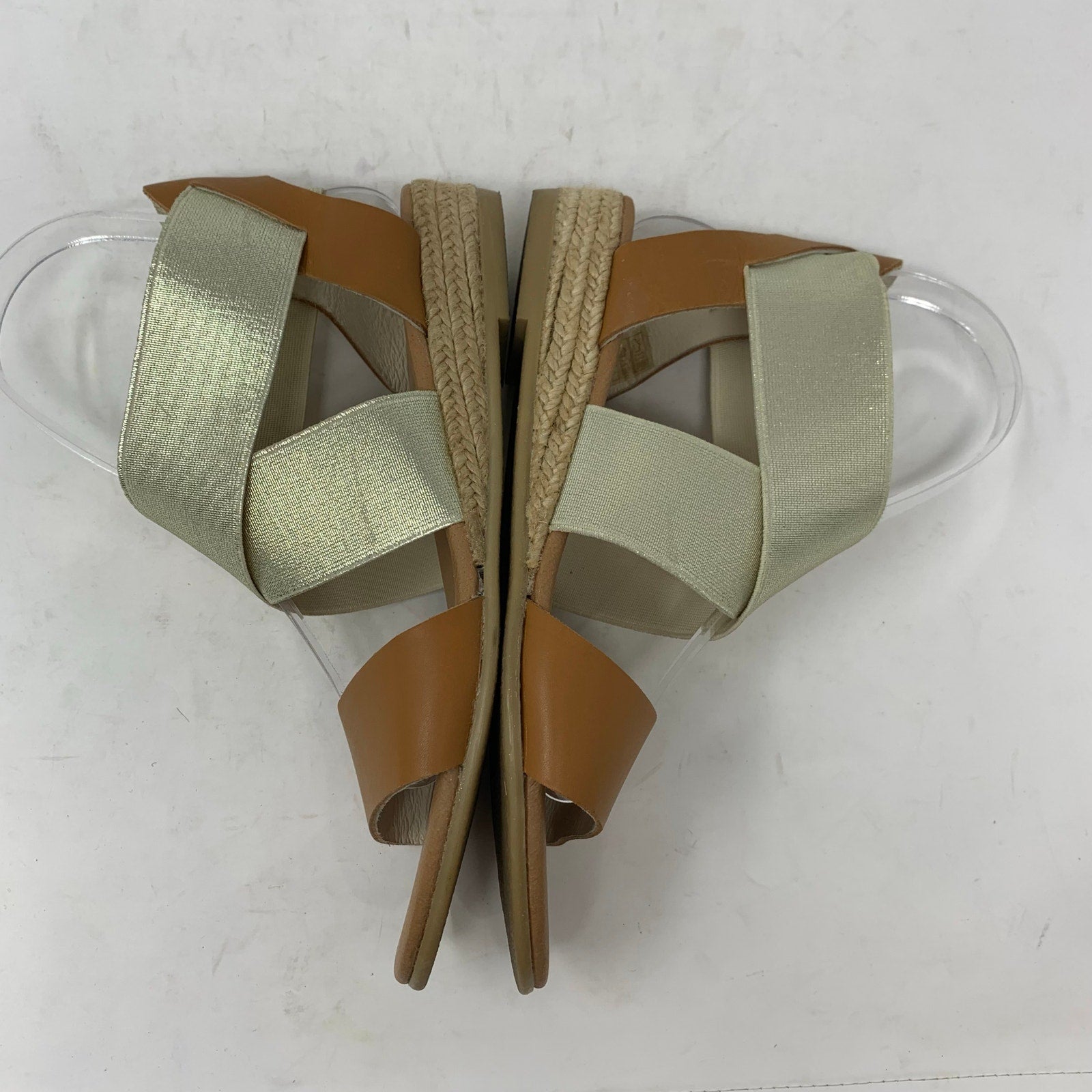 Andre Assous Tan Leather Metallic Gold Wedge Espadrille Sandal Strappy Size 37