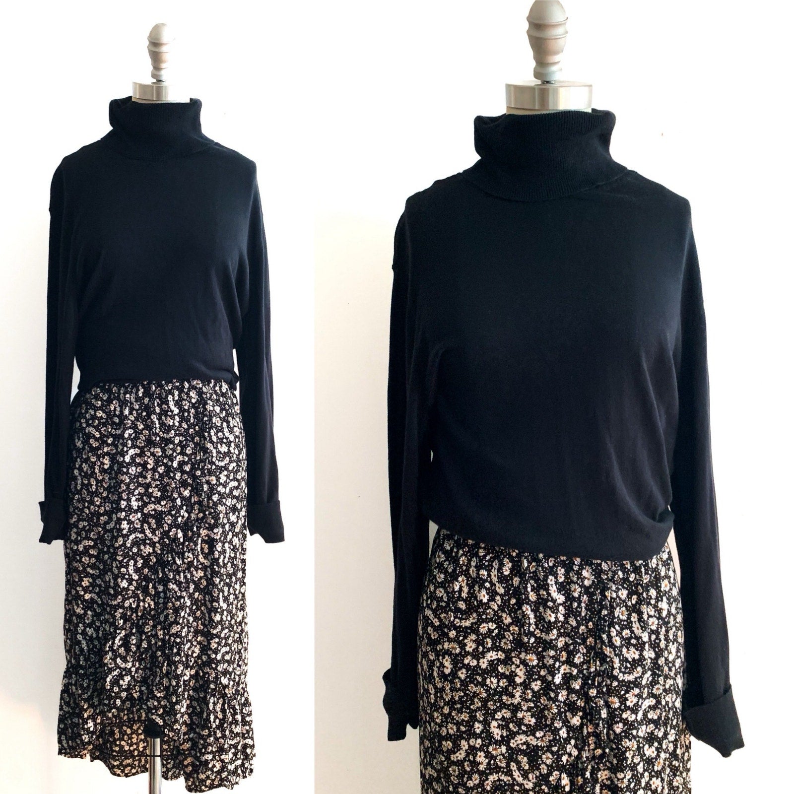 Chaps Size XL Black 100% Cotton Turtleneck Long Sleeve Top Lightweight Sweater