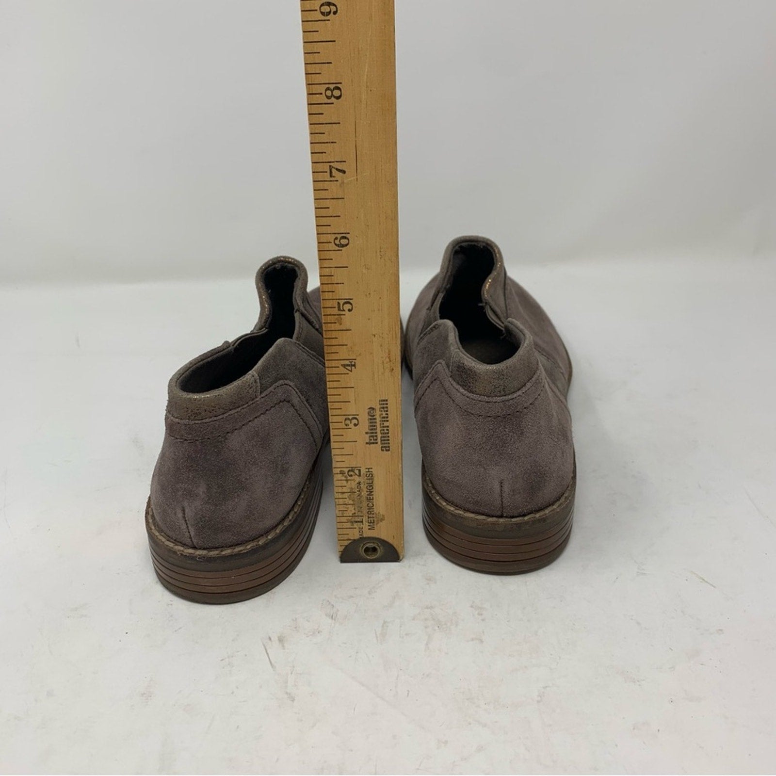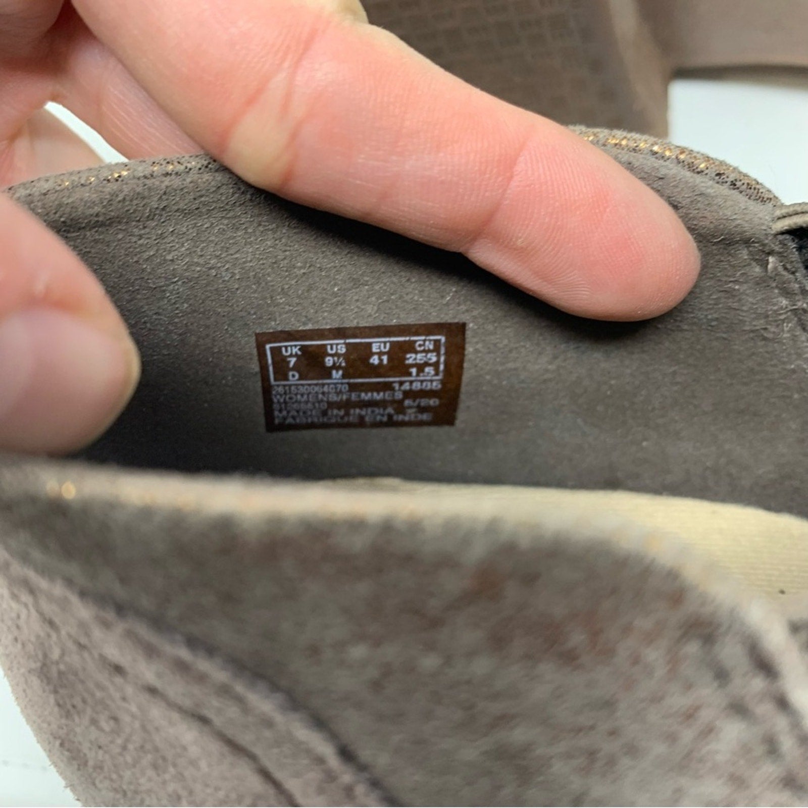 - Material: Suede with metallic trim