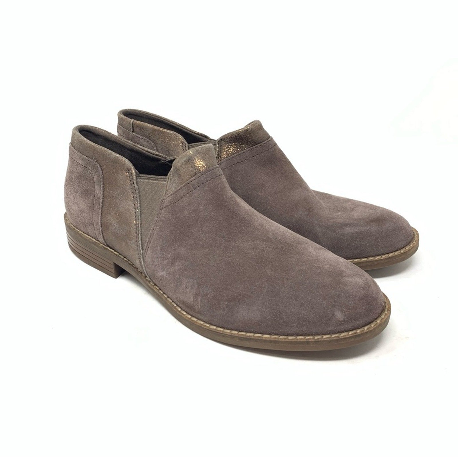 Clarks Collection Camzin Mix Dark Taupe Suede Metallic Trim Ankle Boot Size 9.5
