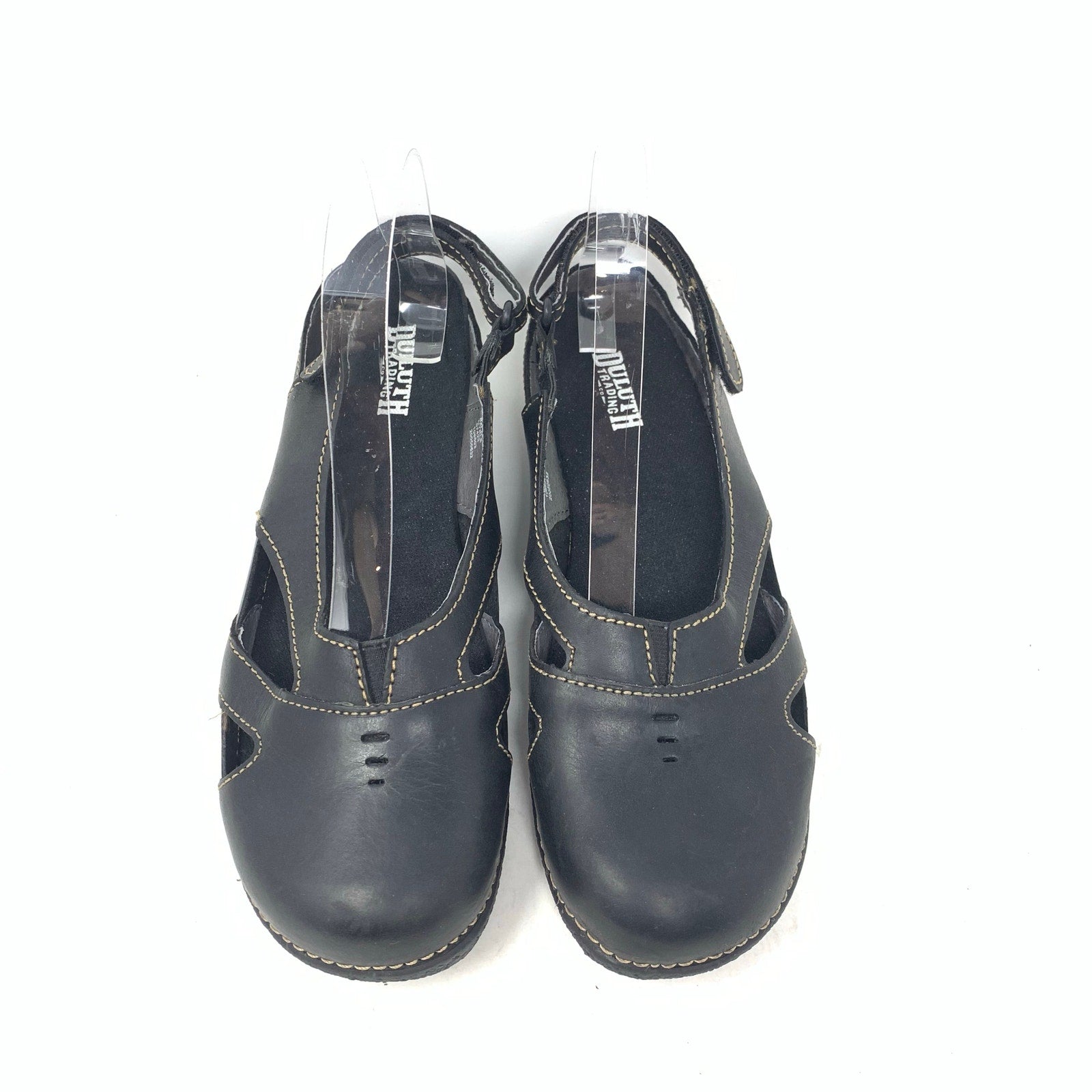 Duluth Trading Womens Size 8.5 Black Leather Slingback Casual Shoe Chunky. Good pre-owned condition with minor imperfections consistent with normal wear, so please see all photos.