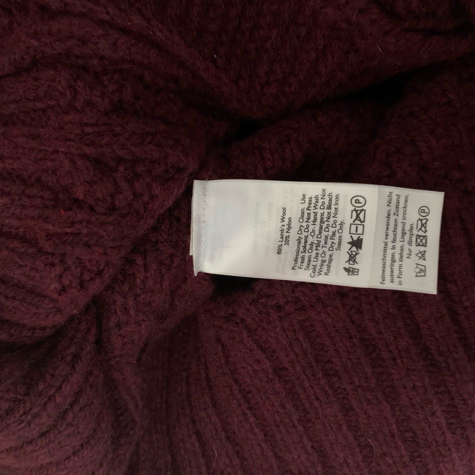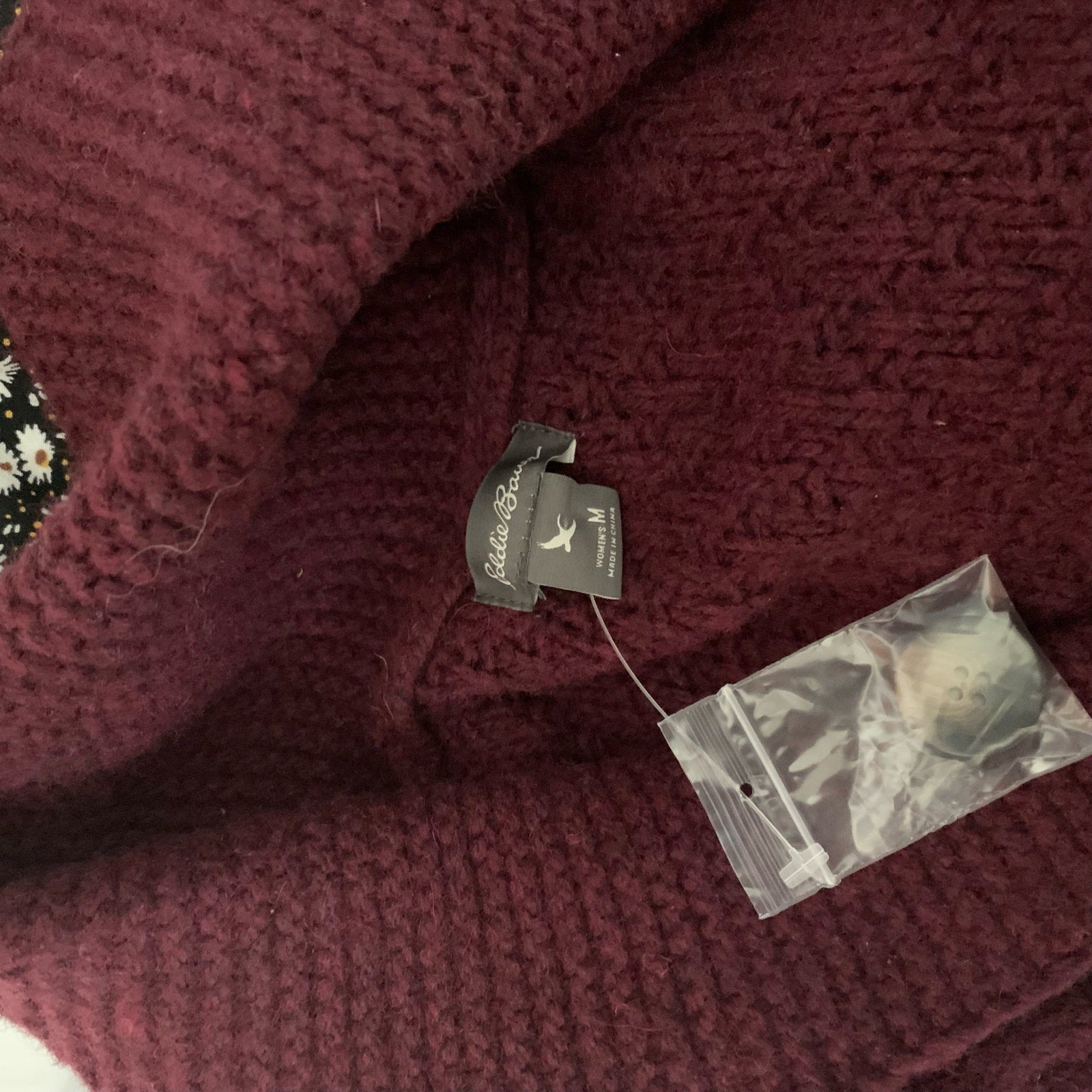 Eddie Bauer Size M Womens Plum Purple Shawl Collar Cardigan Cable Knit. 80% Lambswool, 20% nylon. New without tags-has replacement button hang tag still attached.