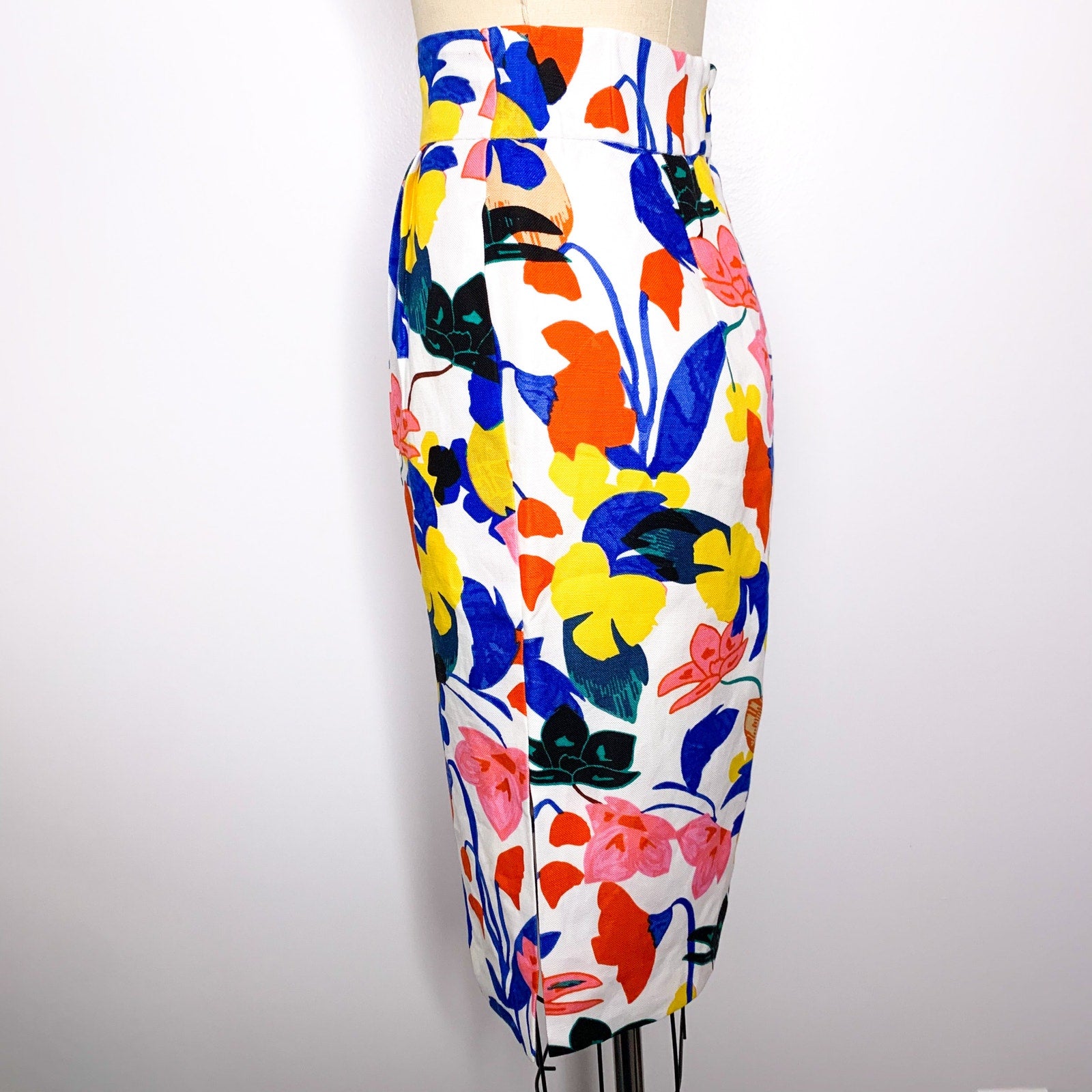 J Crew Size 0P Floral Linen Blend Pencil Skirt Lined Bright Multicolor Abstract Print. Excellent condition. Back zip with hook and eye at top. Side walking vent. 51% Lyocell, 49% linen.