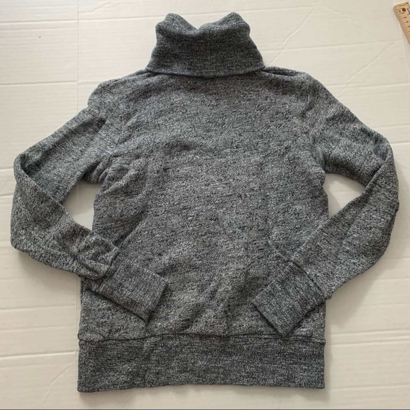J Crew XXS Cotton cowl/ Turtleneck Heather Grey Sweater. Good pre-owned condition with minor imperfections consistent with normal wear, so please see all photos. Measurements shown in photos. Box B.