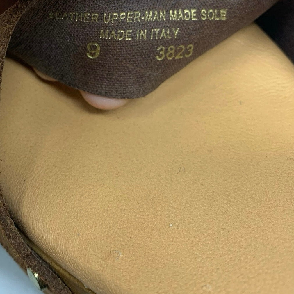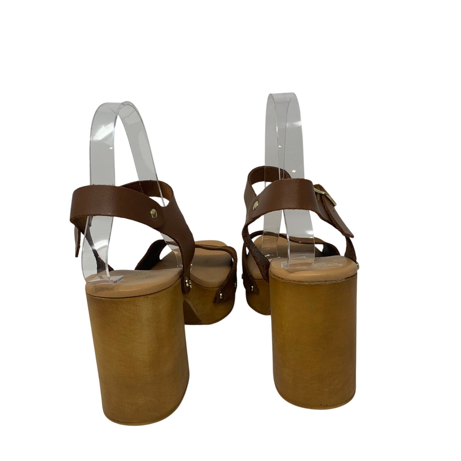 Made in Italy Brown Leather Platform Slingback Sandal Wood Chunky Heel Size 9