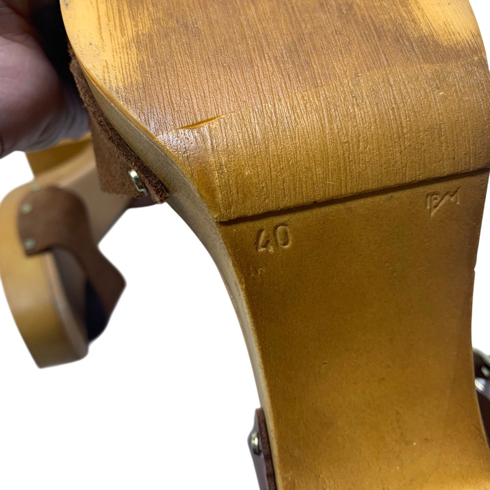 Made in Italy Brown Leather Platform Slingback Sandal Wood Chunky Heel Size 9. Good pre-owned condition with minor imperfections consistent with normal wear, so please see all photos.