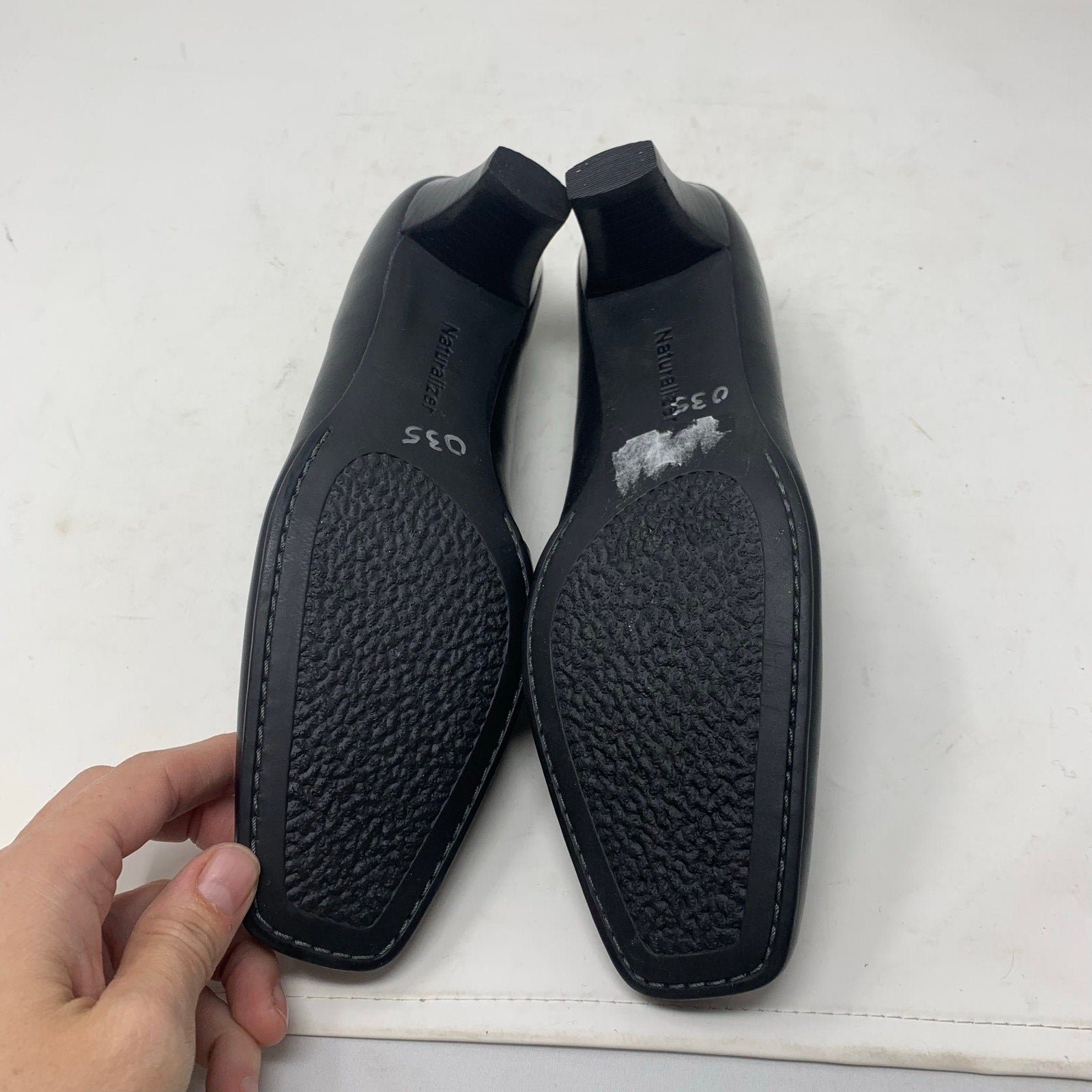 Naturalizer Black Leather Kitten Heel Pump Loafer Square Toe Y2K Size 8 Classic